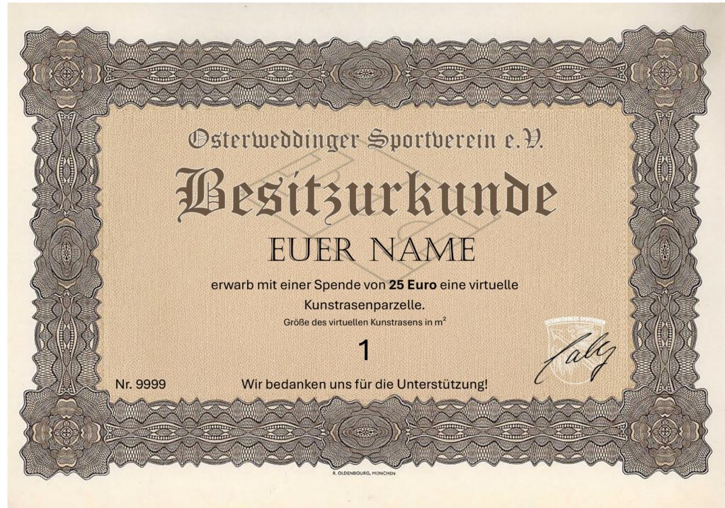 Wenn eine Spendenquittung erwünscht ist, benötigen wir Eure Adresse. Sendet eine Mail an mail(a)osterweddinger-sv.de.